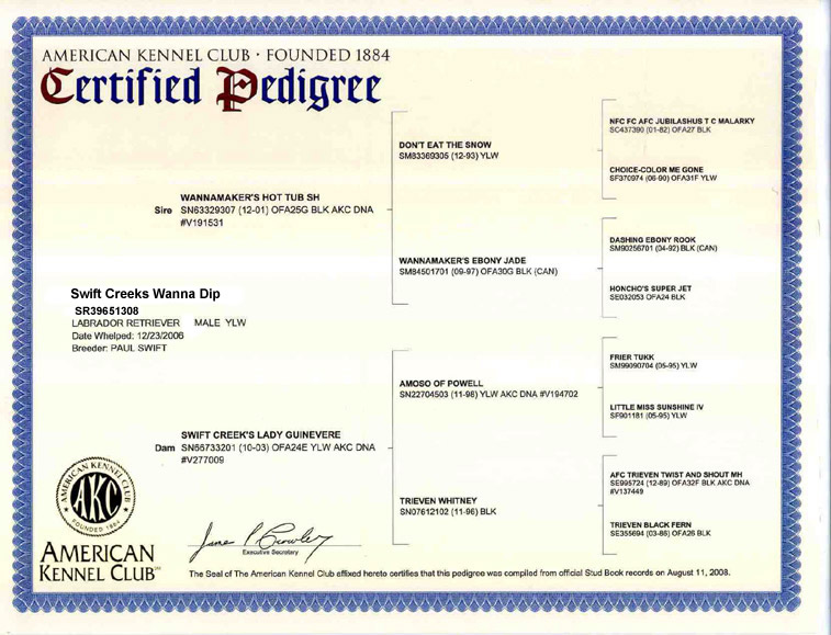 descended from AFC Trieven Twist and Shout and Trieven Thunderhead