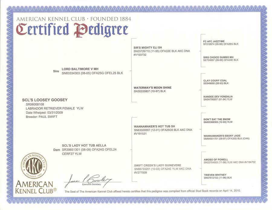 was sired by Lord Baltimore(Lordy). Lordy was sired by GMPR Sir's