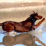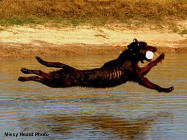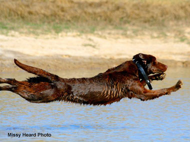 Stella was sired by MPR RattlinRidge's Bronco Bill MH(Willie). Willie is tractable,has a lot of drive and desire to retrieve. He is also a stylish upland bird hunter, with natural point. He is extremely intelligent and biddable. He is dark brown and a muscular 70-75 pounds with a good nose. Willie has jammed Derby's and Quals. SCL's Sugar Magnolia is Stella's dam and she has a lot of Maggie in her. Maggie is a litter mate of FC-AFC-CFC-NCAFC-NDD Upon the Wings of an Answered Prayer(Ammo) who was the 2009 High Point Derby dog that shattered the all time points record by 40%. Ammo now holds 3 of the all time field trial records. Stella has drive and style with a very aggressive water entry. She is fast, powerful, and intelligent. Stella has a great on/off switch and is very good around children and in the house. At nine months she was marking 200+yards to perfection. Stella achieved her AKC Senior Hunter(SH) title in 2013 after taking a year off due to a migrating weed seed in her bloodstream that was finally resolved. Stella will run APLA and HRC events to get her GMPR and HRCH titles. Her early training was done by Dan and Missy Heard of Downtown Retrievers. After a year off due to the migrating weed seed issue she earned her AKC SH title with Rusty Haglund of Trigger Time Kennels. Mike Lettau of K&L Kennels will work with her for her GMPR title. Several of Stella's litter mates will also compete in HRC, AKC, and APLA tests. Three earned AKC JH titles and one an AKC SH and jammed a Derby in 2011 and made the Derby list in 2012 and earned QAA honors in 2014 with a rookie handler/owner. Two hunted pheasants in South Dakota at 5 months of age and were stars among veteran adult pro trained Labs. Owners of these pups purchased 3 puppies from Maggie's next litter(3-25-2012) as did the breeder of the 2011 NFC, FC NFC Watermark's Running Back and the reports thus far are excellent on them. One of them placed 4th in it's first Derby in June of 2013. Stella has a great disposition and loves to work. She also pointed the first bird planted for her. On her first day of water retrieves at 3 months she was leaping 10 feet into the water fearlessly like her mother Maggie. Stella may already be our best dog. Stella is EIC/CNM Clear. Her hips/elbows are certified OFA Good/Normal. She began her heat cycle a couple of days after the OFA X-rays were taken so she may be OFA Excellent. Her CERF is current. She carries only chocolate genes(bbEE). CNM and EIC Clear. The sky is the limit for Stella.